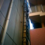不動産屋さんに外壁を通るダクト(厨房からの排気を外に出す管みたいなやつ)