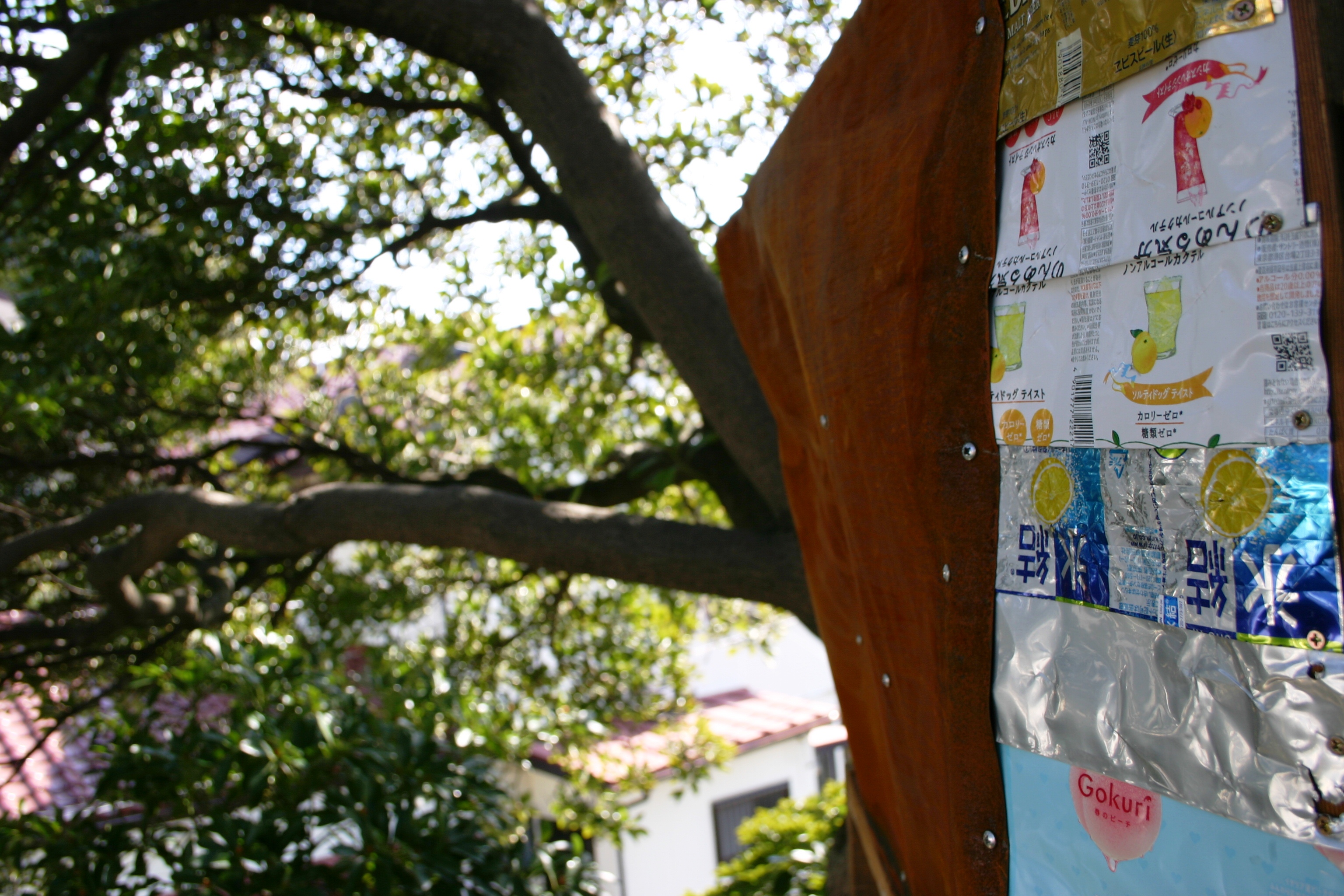 木の形をそのまま生かして枝に沿わせた壁。