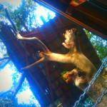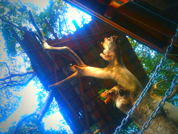 枝に登って屋根をつくっていたら死んだ枝が折れてドキッとしました。